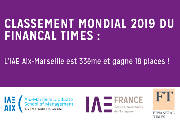 Classement mondial 2019 du Financial Times : L’IAE Aix-Marseille est 33ème et gagne 18 places !
