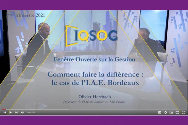 Afin de mettre en avant les domaines d’expertises développés par chacun des IAE, leur diversité et leurs actions au service des sciences de gestion et du management, IAE FRANCE a signé un partenariat avec l’émission IQSOG – Fenêtres Ouvertes sur la Gestion, animée par Jean-Philippe DENIS, enseignant-chercheur à l’université Paris-Saclay et rédacteur en chef de la Revue Française de Gestion. Cette émission est réalisée en étroite collaboration avec Xerfi Canal, web TV incontournable sur les sujets liés au management et à l’entreprise.