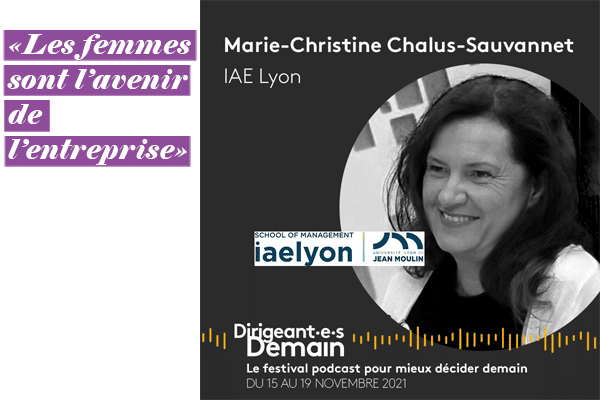 Marie-Christine Chalus-Sauvannet, professeur des universités à l’iaelyon School of Management, témoigne sur l’évolution de la place des femmes dans les instances de gouvernance des entreprises dans un podcast intitulé « Les femmes sont l’avenir de l’entreprise » à retrouver ci-dessous :