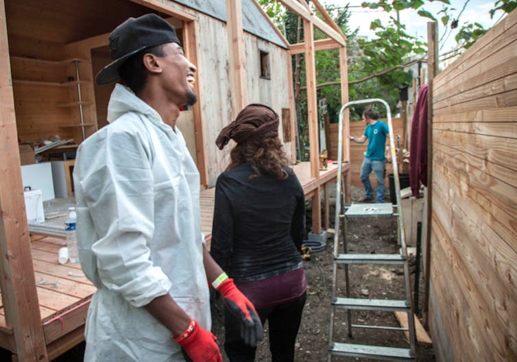 Le projet a été initié et mené par l’association Quatorze afin de construire des petites maisons (tiny house ou maison minuscule) dans les jardins de particuliers et d’organiser une communauté qui aidera une personne réfugiée. Cette aide porte non seulement sur son accès aux droits administratifs et à la santé, mais aussi sur son intégration dans la société, en lui offrant un hébergement et en l’orientant si nécessaire vers une formation, ou encore en l’aidant à s’insérer sur le marché du travail. Les tiny houses sont co-construites par Quatorze, les réfugiés et les voisins du quartier lors de chantiers participatifs.