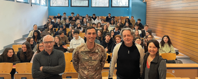 Lors de cet échange, le Colonel a proposé un éclairage clair sur la géopolitique mondiale actuelle et sur le sens de l’engagement militaire au XXIᵉ siècle. Il a abordé les défis auxquels l’armée française est confrontée et a partagé une immersion concrète dans l’actualité géopolitique et militaire, offrant à nos étudiants une perspective précieuse et instructive.