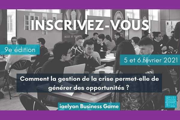 Pour cette nouvelle édition, l’iaelyon Business Game revient pour deux journées d’épreuves consacrées au thème des opportunités générées par la gestion de la crise. La pandémie de Covid-19 ne cesse de bouleverser le fonctionnement des entreprises, en France et partout ailleurs. Comment y font-elles face ? Quels bénéfices peuvent-elle en tirer et quels en sont les enjeux ? Cette année encore, de nouveaux défis attendent les étudiants : épreuve de consulting, pitchs convaincants et simulation d’entreprise.