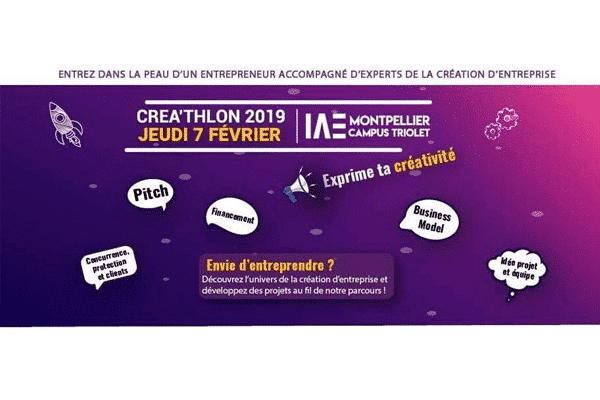 Avec ou sans projet, ne manque pas la 6ème édition du Créa’thlon qui se tiendra le jeudi 7 février à l’IAE, campus Triolet de l’Université de Montpellier !