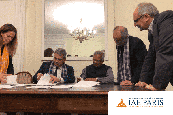 Le 20 Novembre 2018, l’IAE de Paris par l’intermédiaire de sa Chaire ETI (Entrepreneuriat, Territoire, Innovation), signait un accord avec le Yunus Centre, représenté par son fondateur et Président : Muhammad YUNUS, prix Nobel de la Paix 2006.