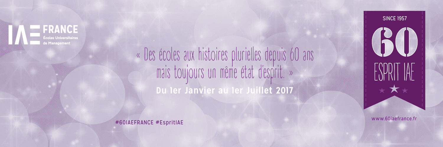 Du 1er janvier au 1er juillet 2017, dans toute la France et même dans les DOM-TOM, les IAE célébrent ces 60 ans. Cet anniversaire se fête avec l’ensemble de la communauté IAE (étudiants, diplômés, enseignants et personnels et Ambassadeurs #EspritIAE). Depuis janvier, les événements s’enchaînent et chacun a eu l’occasion de fêter les 60 ans :