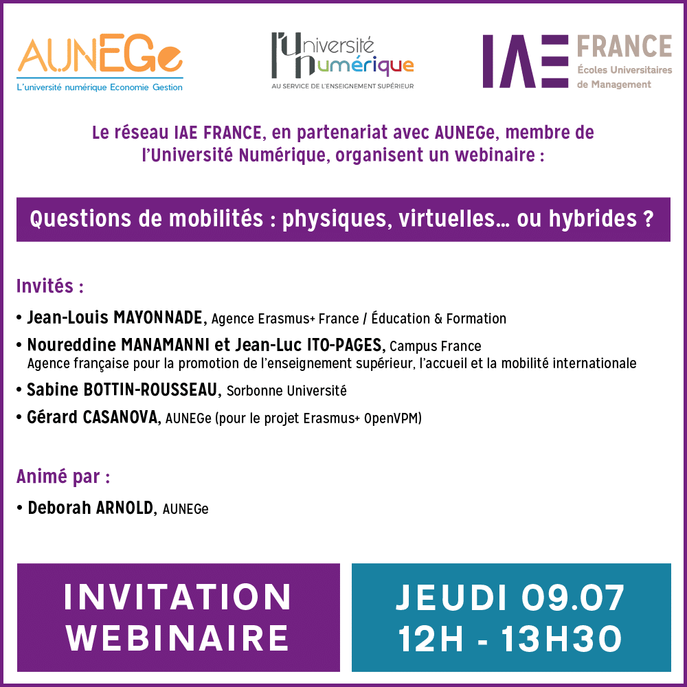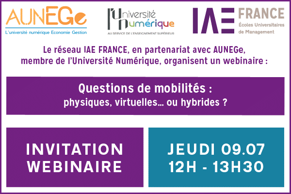 IAE FRANCE, en partenariat avec AUNEGe,  membre de l’Université Numérique, ont le plaisir d’organiser