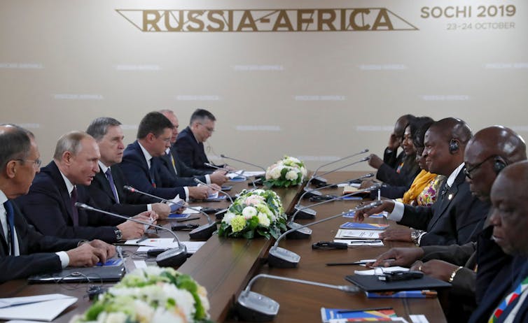 Parmi les vecteurs mobilisés par Moscou afin de rebâtir son influence figure notamment la coopération militaro-technique – la Russie est le premier fournisseur de matériels militaires en Afrique subsaharienne pour la période 2018-2022 selon le Stockholm International Peace Research Institute (SIPRI). On peut aussi mentionner la diplomatie économique avec le Comité de coordination pour la coopération économique avec les pays africains (Afrokom).