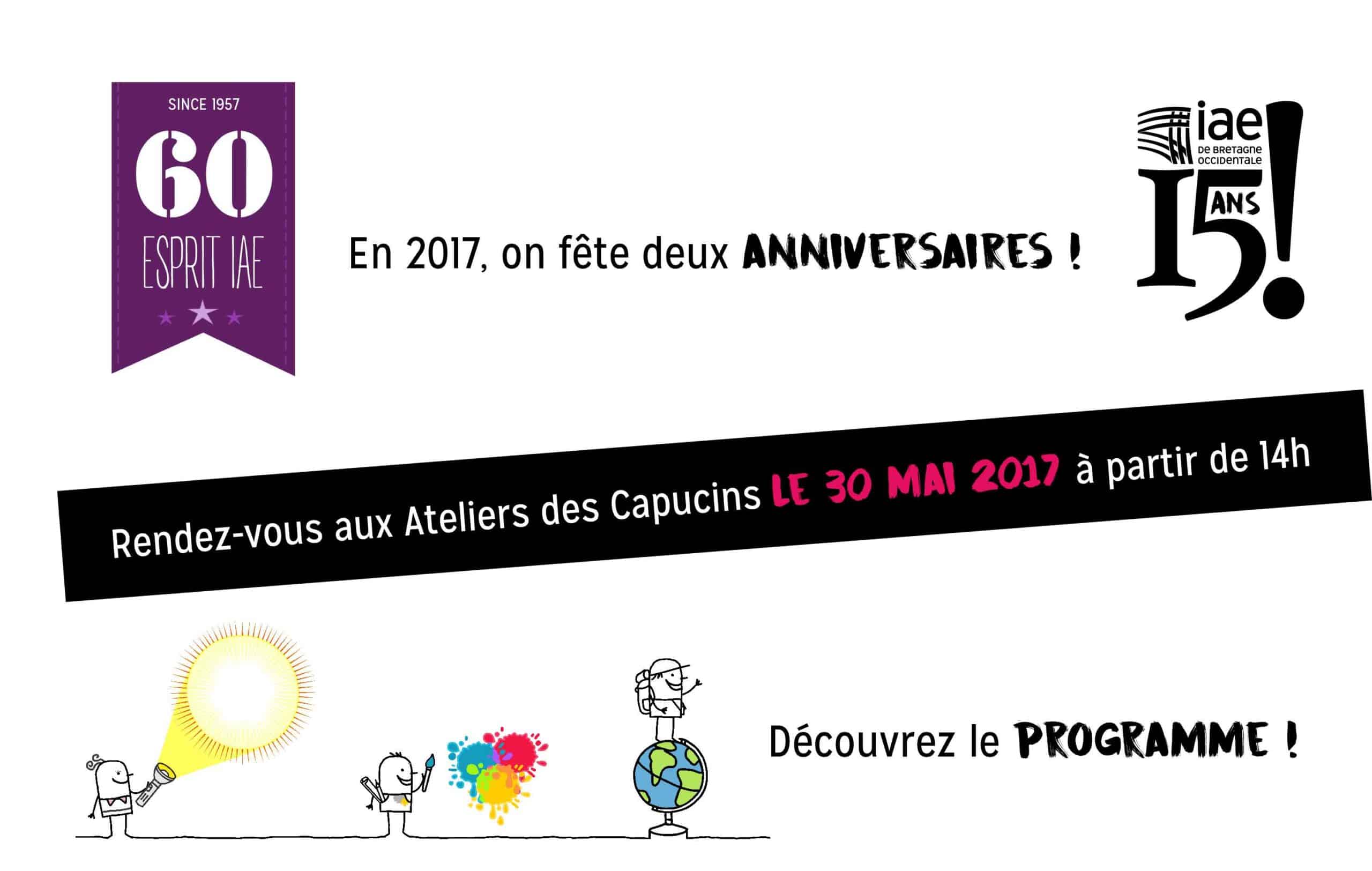 CES ANNIVERSAIRES SERONT CÉLÉBRÉS MARDI 30 MAI 2017, À PARTIR DE 14H, AUX ATELIERS DES CAPUCINS À BREST.