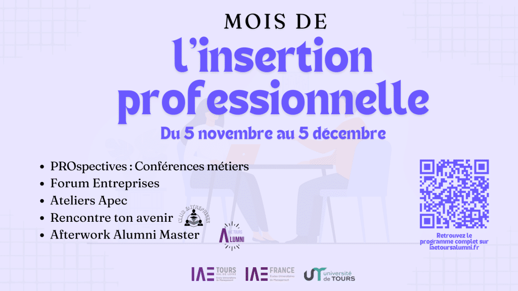 L’IAE Tours Val de Loire met l’insertion professionnelle à l’honneur du 5 novembre au 5 décembre en organisant de multiples événements.