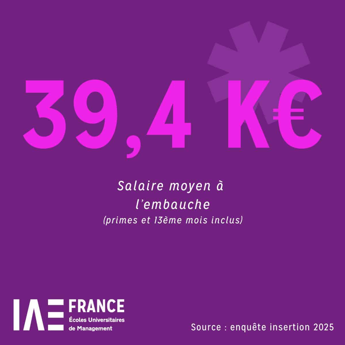 Le salaire annuel brut moyen à l’embauche, primes et 13ème mois inclus, s’établit à 39 400 €, un chiffre très proche du salaire de recrutement moyen des diplômés des écoles de commerce privées.
