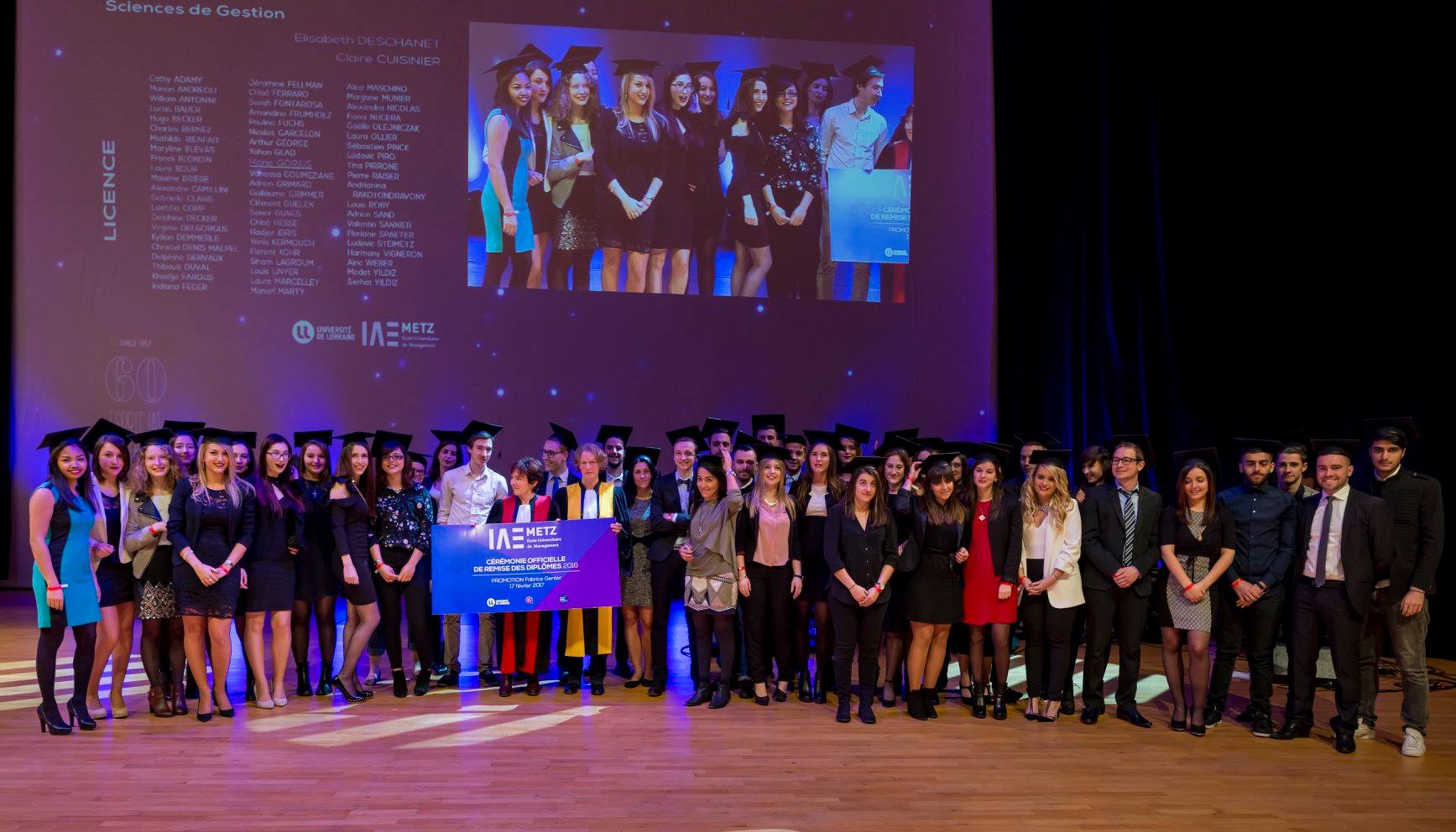 Le 17 février dernier s’est déroulée la cérémonie de remise des diplômes de l’Institut d’Administration des Entreprises à l’Arsenal de Metz. L’IAE a regroupé ses 637 diplômés de la promotion 2015/2016, ses professeurs, personnels administratifs, étudiants, élus, représentants du monde économique, associatif, autour de la cérémonie officielle de remise de diplômes. Près de 900 personnes sont venues assister à la cérémonie et féliciter les diplômés de la promotion 2016.