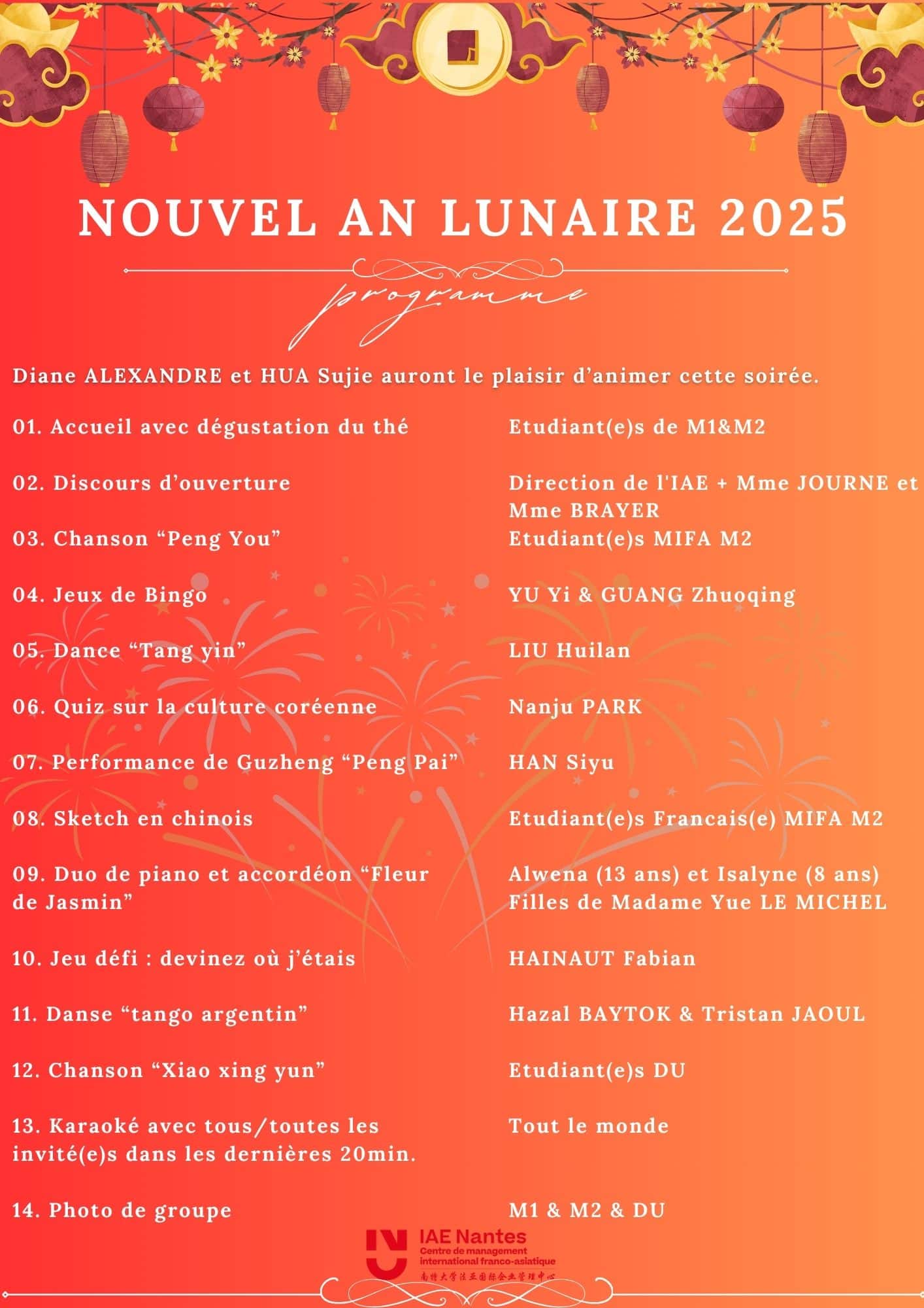 Mardi 28 janvier, les étudiants du Master en Management International Franco-Asisatique, et du DU EMFC, Études de Management Franco-Chinois de l’IAE Nantes ont organisé une soirée pour fêter le nouvel an lunaire et marquer ainsi le début de l’Année du Serpent