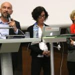 La première table ronde abordait la thématique de la gouvernance des universités et des politiques territoriales avec une question majeure : quels sont les enjeux d’une gouvernance des universités en lien avec les politiques territoriales ? Philippe Augé, Anne Loubès, Maud Morlaàs-Courties (VP CA UM3), Gilles Halbout (Président ComUE LRU), Chantal Marion (Vice Présidente de Montpellier Méditerranée Métropole), Bertrand Monthubert (Conseiller régional de la Région Occitanie) et Bruno Fabre (Vice Président CA UM) ont débattu sur le lien des politiques des universités avec les politiques territoriales.